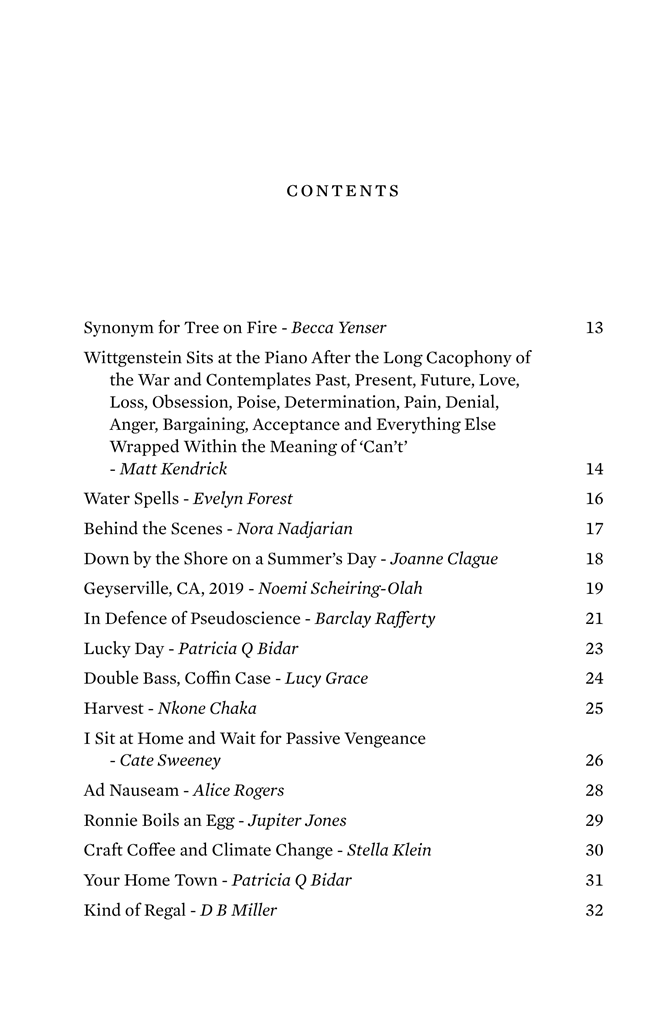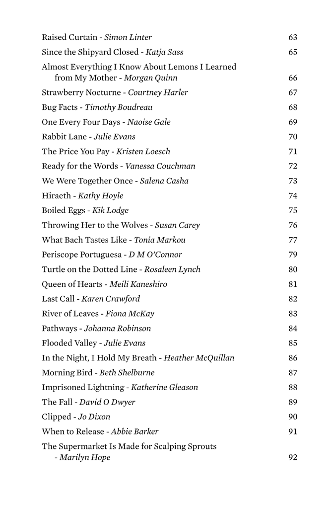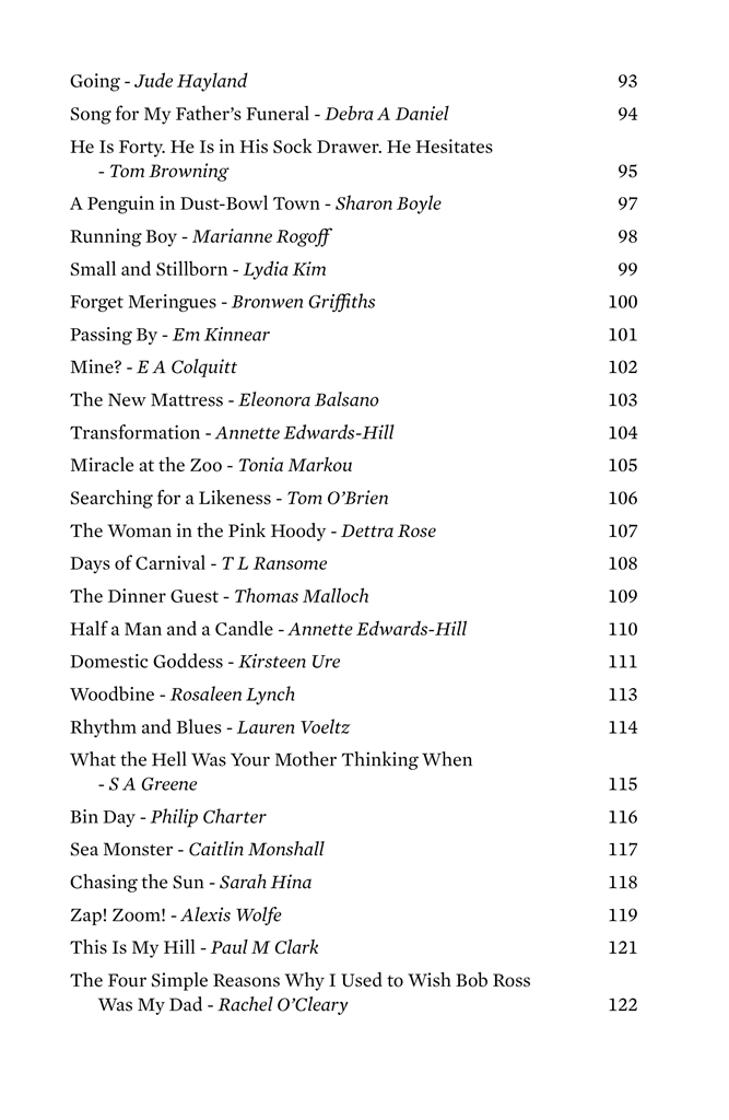Within these pages, the traditional narrative shares space with the experimental. Humour sits alongside tragedy. Each of these page-long stories packs a punch greater than its word count suggests.